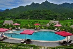 Breakfast at the hotel and check-out. At 07.45 AM: Your private guide and driver will pick you up at your hotel and transfer about 4 to 4.5 hours to Mai Chau - home of Thai ethnic people. Arrive in Mai Chau in the late morning, check-in, and enjoy lunch at a Thai family house.