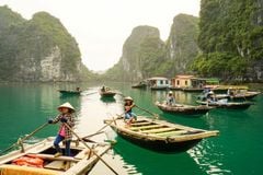 Have breakfast on board. Visit Vung Vieng fishing village by a rustic rowboat, meet the locals, and pass through the floating school and fish farms.