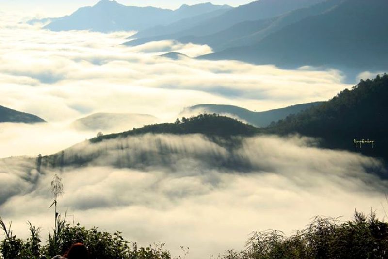 Điểm ngắm mây đẹp nhất, bạn có thể bắt gặp những áng mây trắng phủ kín cả thung lũng.